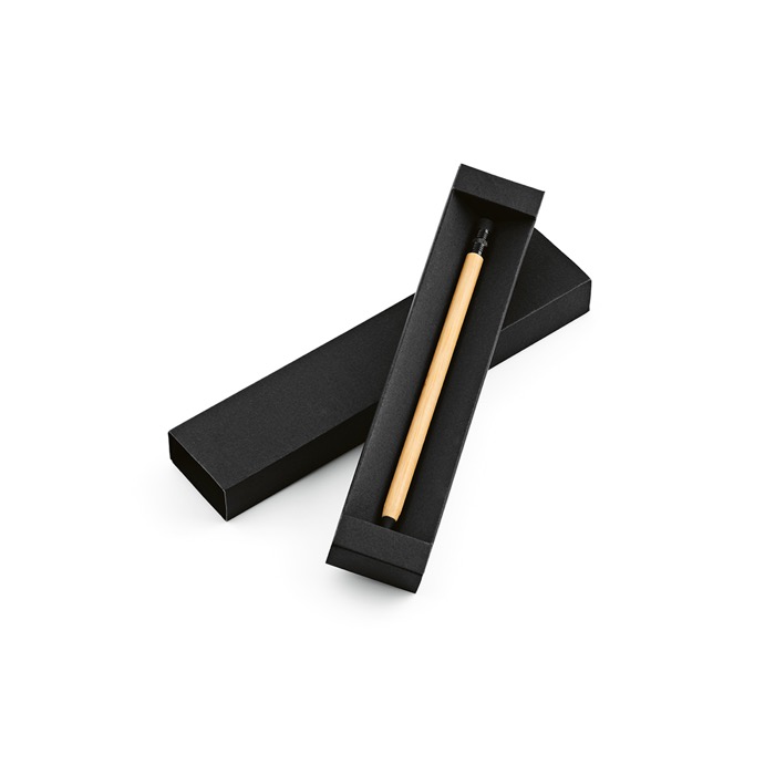 Lápiz fabricado en bambú, una opción sostenible que combina elegancia y funcionalidad. Este lápiz infinito, con tinta que no se agota, incluye un borrador para correcciones rápidas. Viene presentado en una caja de regalo hecha de papel reciclado, subrayando su compromiso con el medio ambiente. Su diseño duradero y versátil lo hace ideal para la escritura diaria y la toma de notas importantes, ofreciendo una alternativa innovadora a los lápices corporativos tradicionales. Además, cuenta con un servicio Express para entregas rápidas. Perfecto para empresas que buscan productos ecológicos para sus campañas de marketing o regalos corporativos.