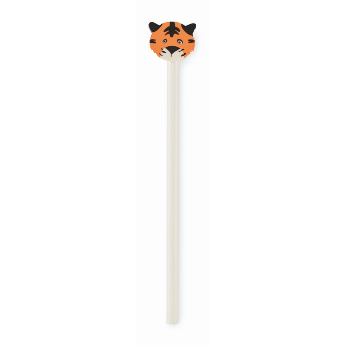 Lápiz de madera con goma de borrar en forma de animal, pensado para el uso diario en oficina, aulas o recepciones. La mina ofrece una escritura fluida y la goma integrada ayuda a corregir rápidamente sin buscar accesorios adicionales. Cuerpo ligero y cómodo para tomar notas, hacer bocetos o completar formularios. Por su formato compacto, resulta fácil de incluir en estuches, packs de bienvenida o material de eventos. Recomendado para acciones de marca en ferias, formaciones o campañas internas.