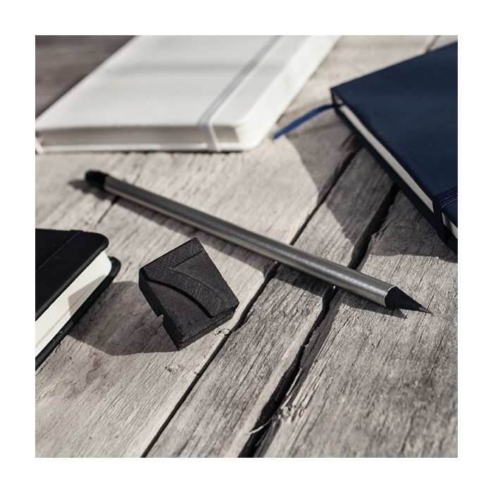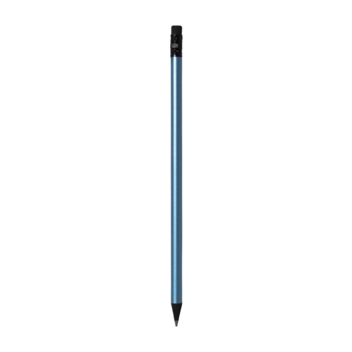 Lápiz de madera con acabado metálico y goma para un toque moderno