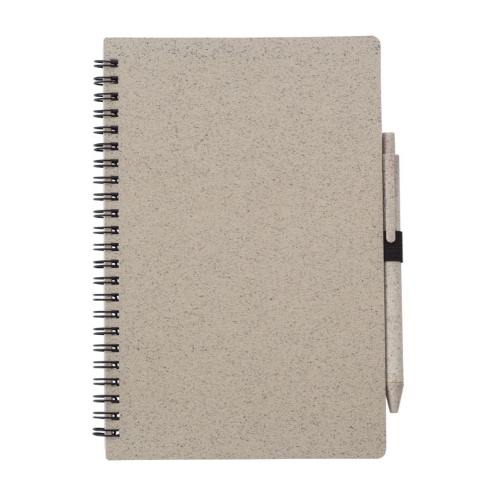 - Libreta A5 con tapa de paja de trigo y bolígrafo a juego