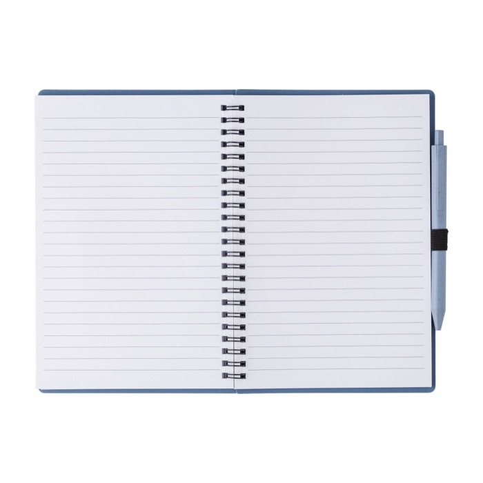 Libreta de tapa de paja de trigo y PP (polipropileno) con un bolígrafo a juego, ideal para empresas que valoran la sostenibilidad. Con un formato aproximado A5, ofrece 70 hojas lineadas que facilitan la organización de apuntes durante reuniones y presentaciones. La tinta azul del bolígrafo asegura una escritura clara y profesional. El diseño resistente de la tapa protege el contenido, mientras que el bolígrafo de paja de trigo complementa el conjunto con un toque ecológico. Perfecta para incluir en kits de bienvenida corporativos o como material promocional en eventos empresariales. Además, cuenta con servicio Express para necesidades urgentes.