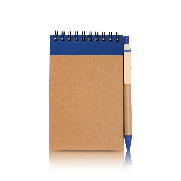 - Bloc de notas A6 con cartón reciclado y bolígrafo integrado