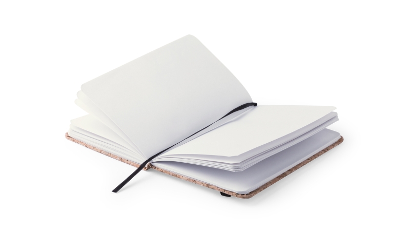 Bloc de notas con tapas de suave tacto acabadas en corcho natural. Con un formato compacto B7, este bloc ofrece 80 hojas en blanco, ideales para anotaciones rápidas o bocetos. Incluye un elástico de sujeción que mantiene el contenido seguro y un marcapáginas de tela a juego para facilitar el acceso a las páginas más importantes. Suministrado en bolsa individual, aunque el embalaje puede variar para pedidos con impresión personalizada. Perfecto para empresas que buscan un regalo corporativo práctico y con un toque natural, ideal para reuniones, conferencias o como parte de un kit de bienvenida.