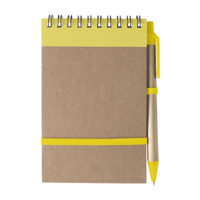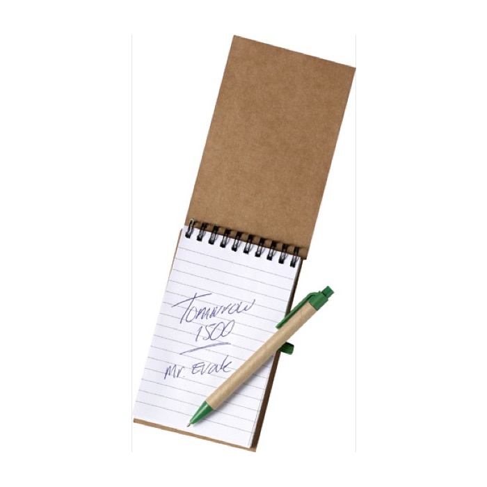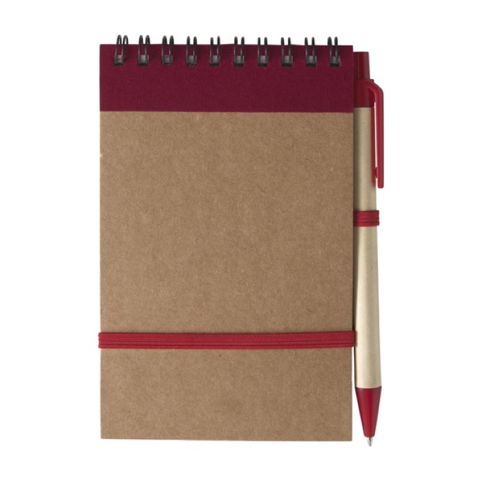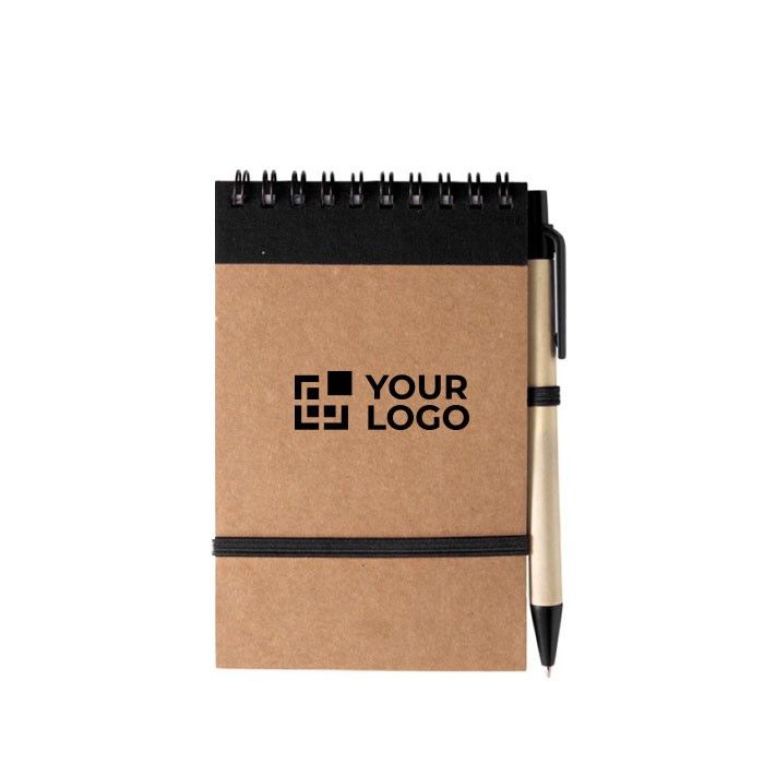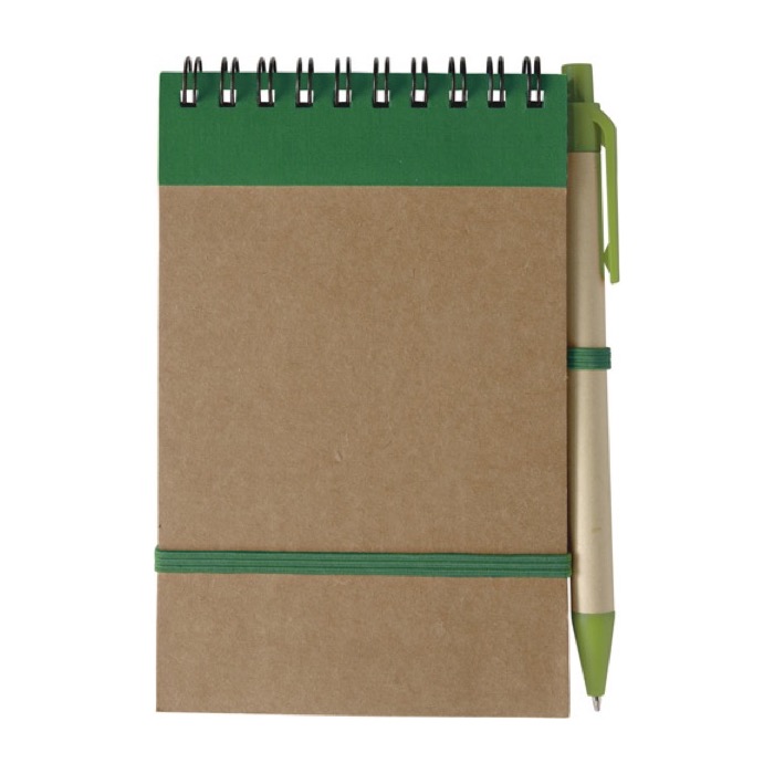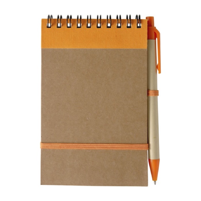 Bloc de notas con bolígrafo de cartón A6 hojas a rayas EcoSpiral