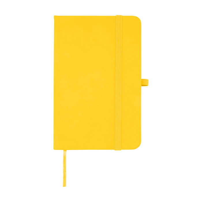 Libreta de tapa dura A6 fabricada con un material de tacto suave, diseñada para ofrecer durabilidad y comodidad. Con 80 hojas rayadas de color crema y un gramaje de 70 g/m², es perfecta para anotar ideas rápidas o desarrollar notas más extensas. Las esquinas redondeadas añaden un toque de elegancia y evitan el desgaste. Incluye un práctico soporte para bolígrafo, cierre elástico para mantenerla cerrada de forma segura, un marcador de cinta para acceder rápidamente a tus notas y un bolsillo acordeón para guardar documentos sueltos. Ideal para reuniones, conferencias o como parte de un kit de bienvenida corporativo. Además, cuenta con servicio Express para entregas rápidas.