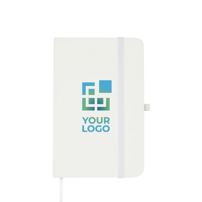 - Libreta de tapa dura A6 con cierre elástico y soporte para bolígrafo