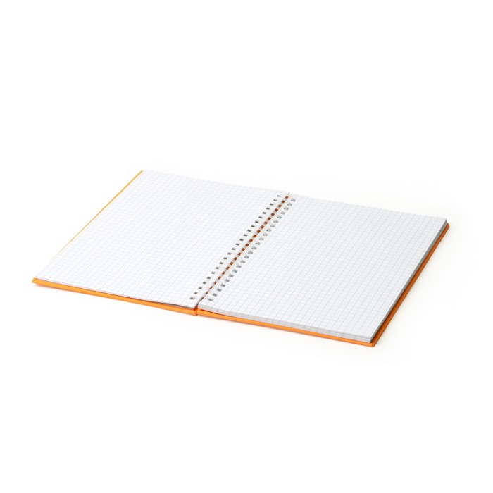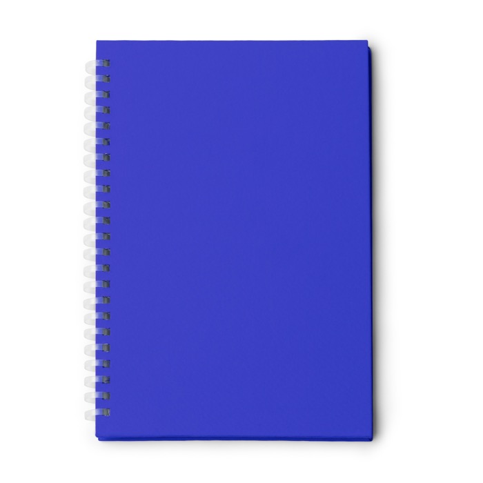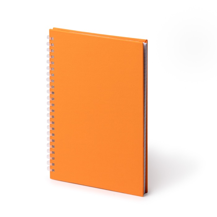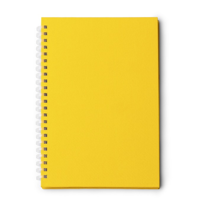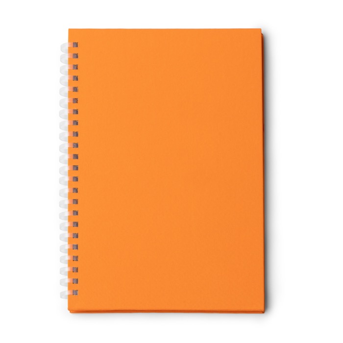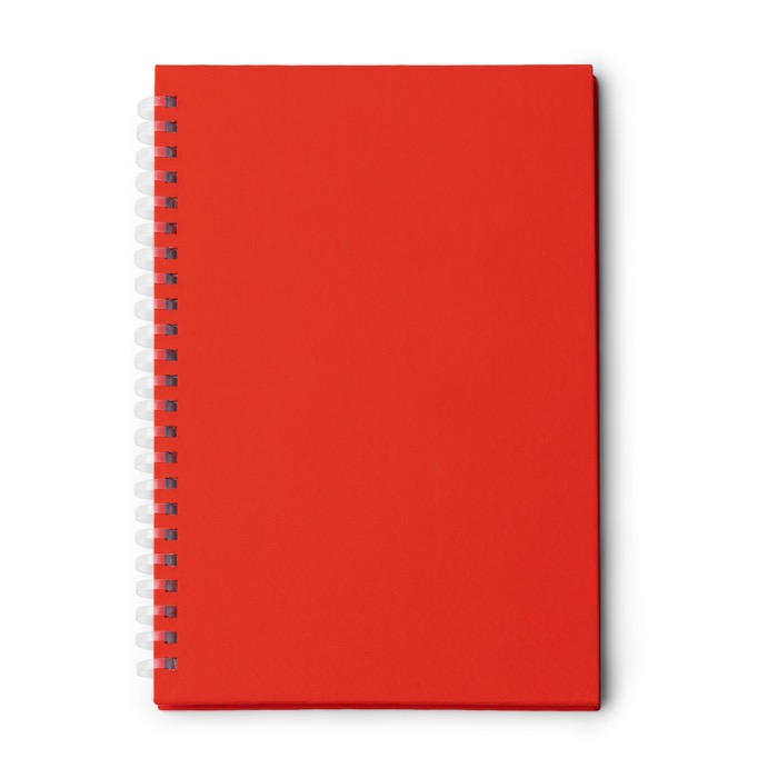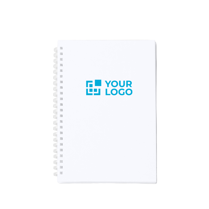 Bloc de notas tamaño A5 en plástico reciclado, con anillas flexibles que facilitan el paso de páginas y el uso diario en reuniones. Incorpora tapa rígida del mismo material para proteger el contenido en transporte, mochila o mesa de trabajo. El interior incluye hojas a cuadros, pensadas para tomar apuntes, planificar tareas o hacer esquemas con orden. Un formato práctico para equipos comerciales, formaciones internas o acciones de comunicación en eventos con personalización corporativa.