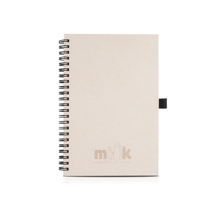 Bloc de notas con anillas A5 fabricado con cartón reciclado de cartones de leche. Este bloc es una opción eco-amigable, ideal para empresas que buscan productos sostenibles. Con 70 hojas lisas de 80gsm, ofrece un espacio amplio y cómodo para tomar notas, dibujar o planificar proyectos. El diseño en blanco permite personalizar cada página según las necesidades del usuario. Además, el servicio Express asegura una entrega rápida, facilitando la gestión de suministros en la oficina. Perfecto para reuniones, presentaciones o como parte de un kit de bienvenida corporativo, promoviendo un compromiso con el medio ambiente.