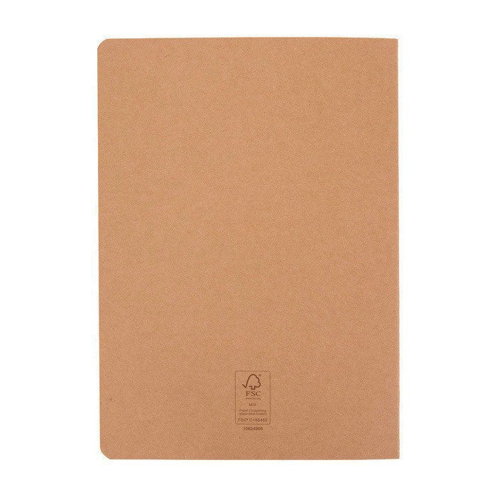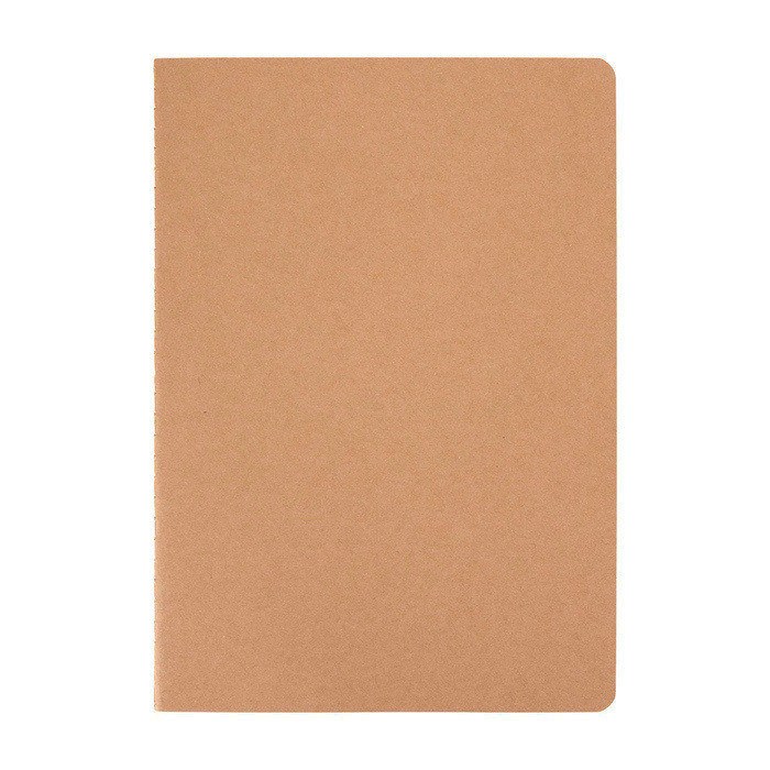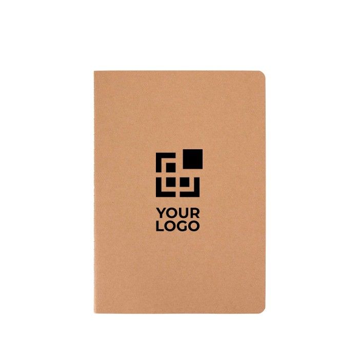 - Libreta kraft A5 con tapa de cartón resistente y costura visible