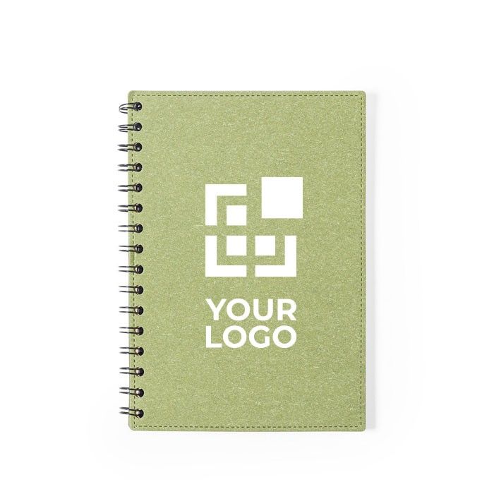 Libretas para empresas con anillas y tapas duras de cartón reciclado. Cuenta con varias posibilidades de color para las tapas para que se ajusten a tu marca.
