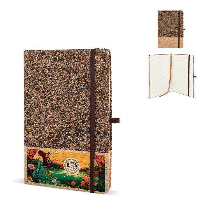 - Cuaderno A5 con exclusiva cubierta de corcho y café molido