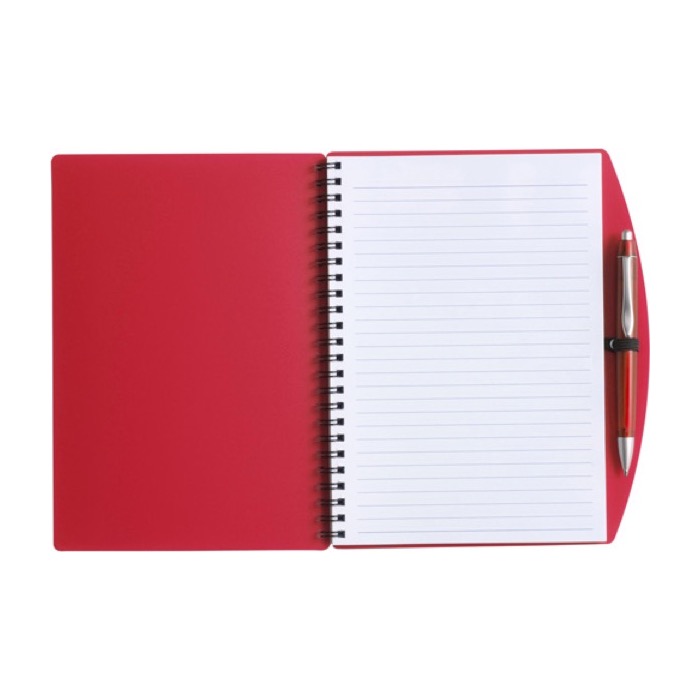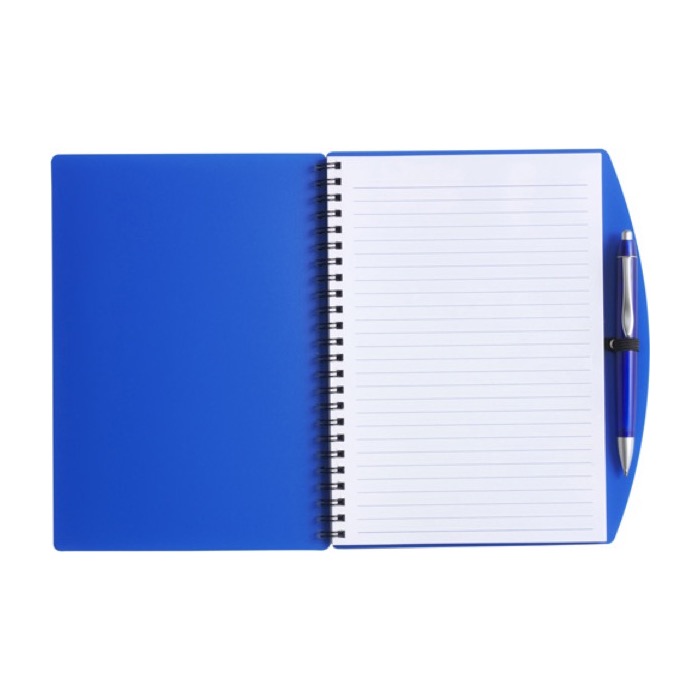 - Libreta A5 con tapas de polipropileno y bolígrafo a juego
