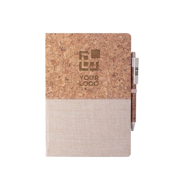 - Set de bloc de notas y bolígrafo con tapas de corcho natural y algodón