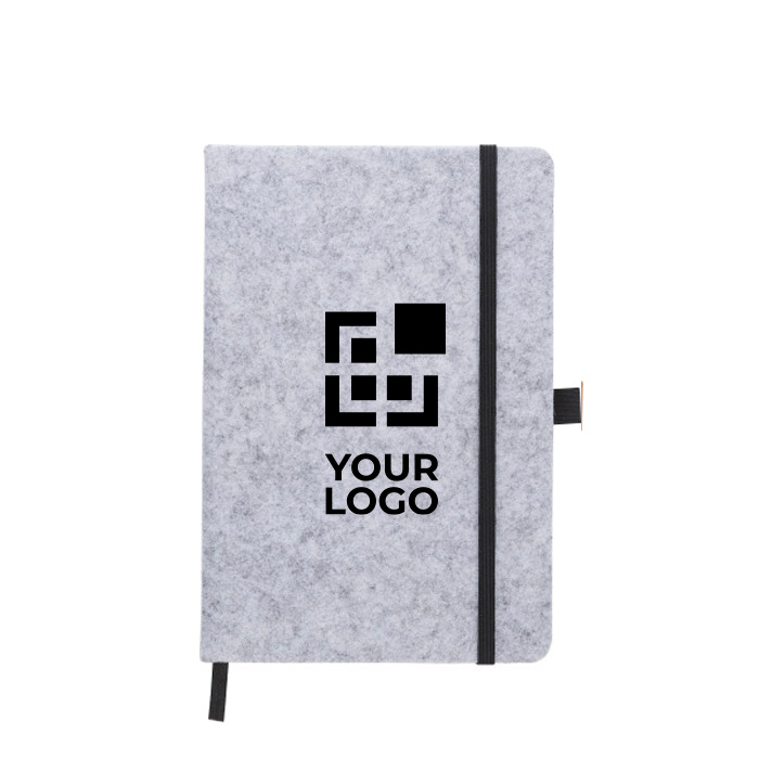 Libreta corporativa de fieltro RPET con cierre de goma y 160 páginas lineadas