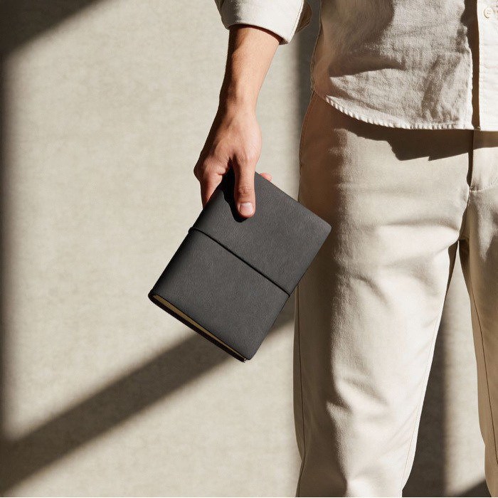 Libreta cartón con funda protectora con elástico y hojas en blanco A5