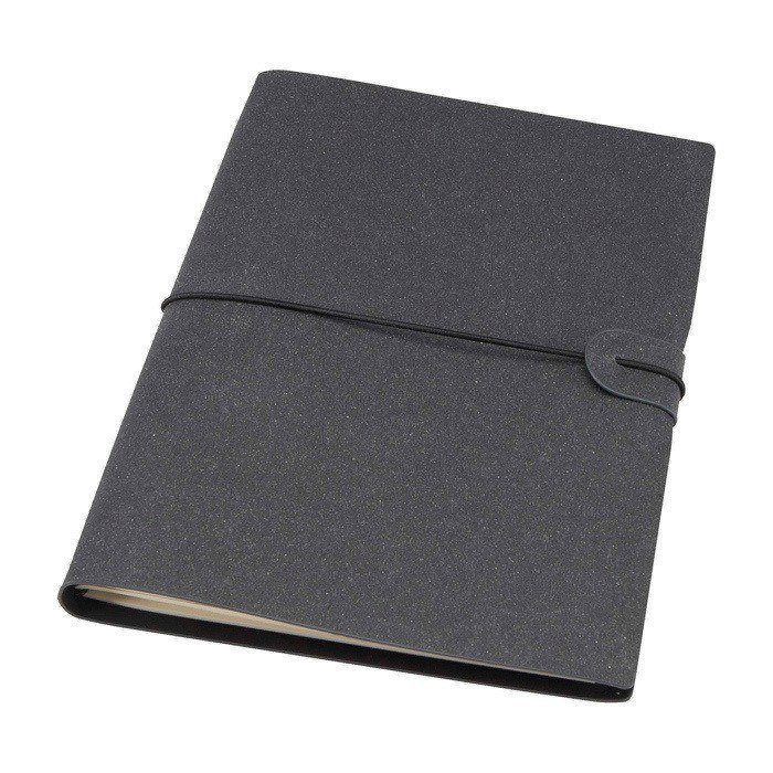 - Libreta A5 con cubierta de plástico reciclado y cierre elástico