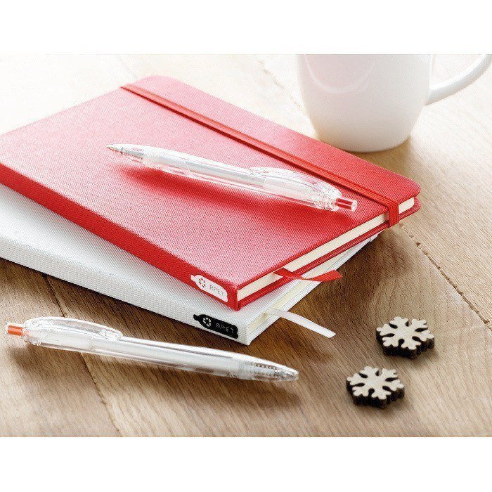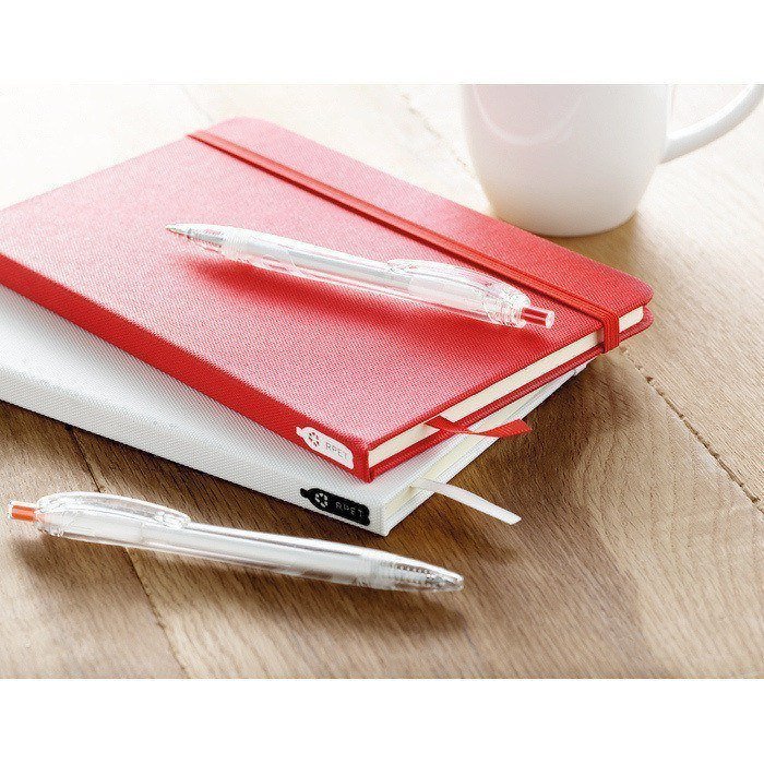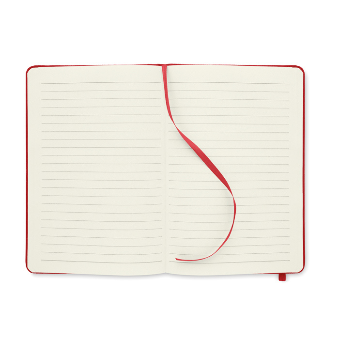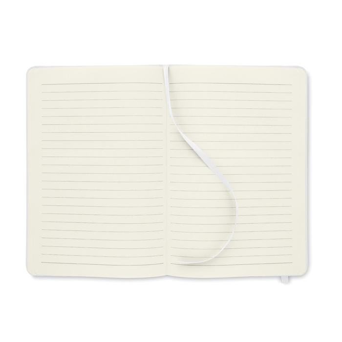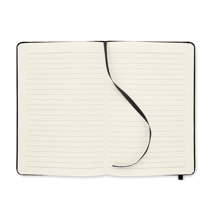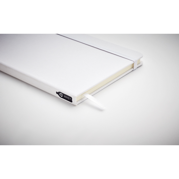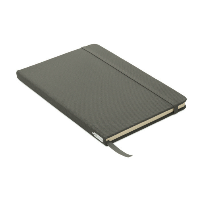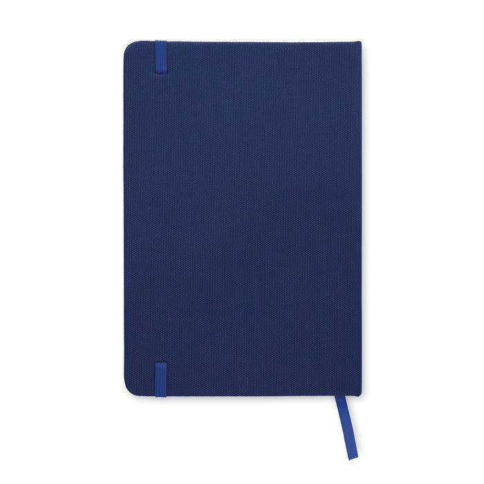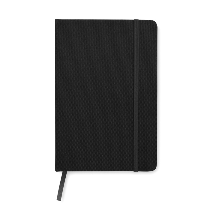 - Libreta A5 con tapa dura de 600D RPET y banda elástica