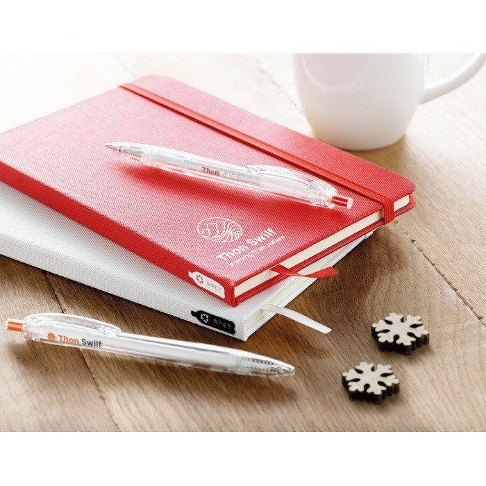 Libreta A5 fabricada con tapa dura de 600D RPET, un material reciclado que aporta durabilidad y sostenibilidad. Contiene 80 hojas rayadas de papel reciclado, ideales para tomar notas de manera organizada. Incluye una banda elástica que mantiene el cuaderno cerrado y un marca páginas para facilitar el acceso a tus anotaciones. El servicio Express asegura una entrega rápida, ideal para empresas que necesitan soluciones inmediatas. Perfecta para personalizar con el logotipo de tu empresa, esta libreta es una opción práctica para regalos corporativos o como parte de una campaña de marketing sostenible.