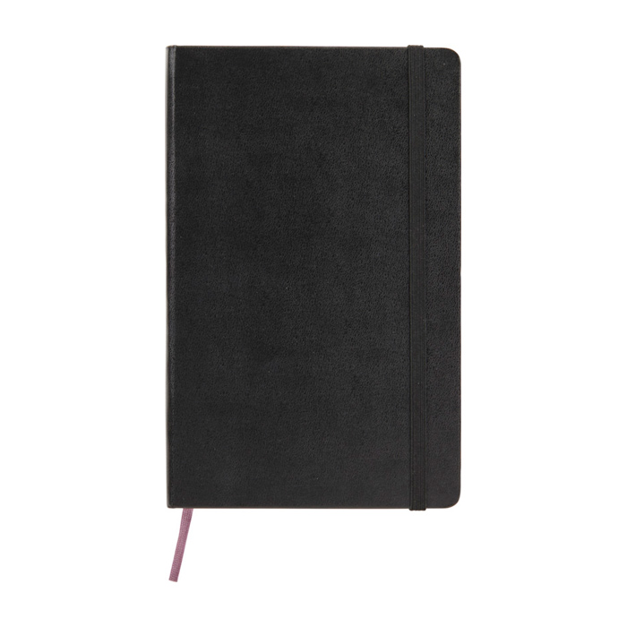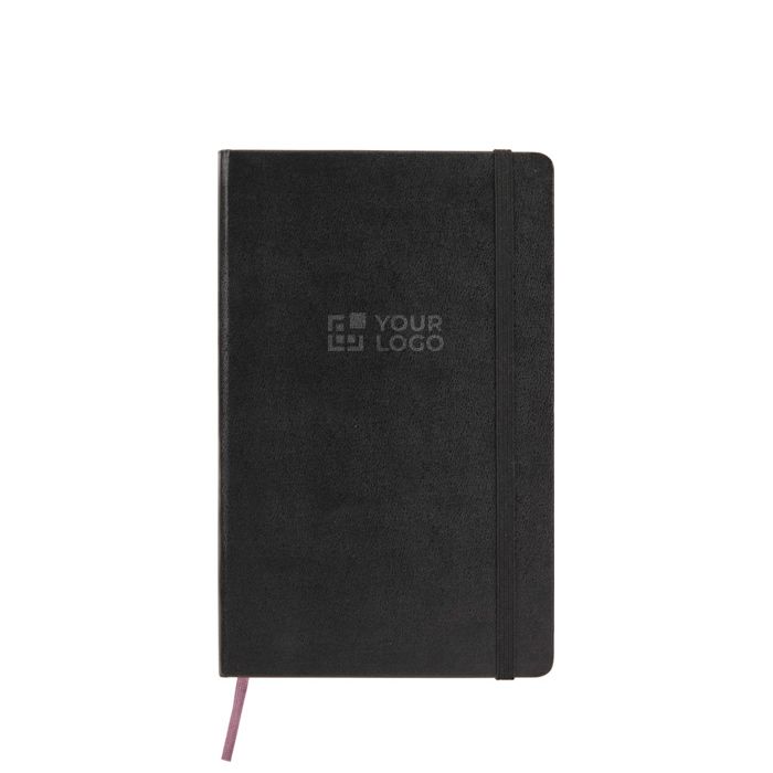 - Libreta de tapa dura con cierre elástico y marcapáginas