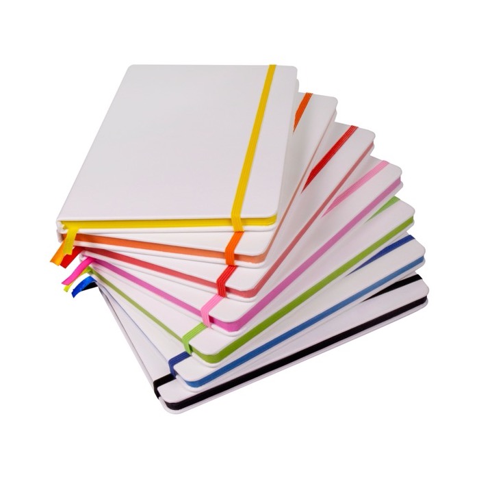 Libreta blanca con goma de color A5 hojas lisas White Colors