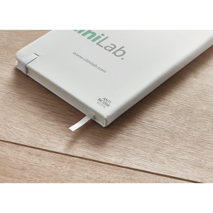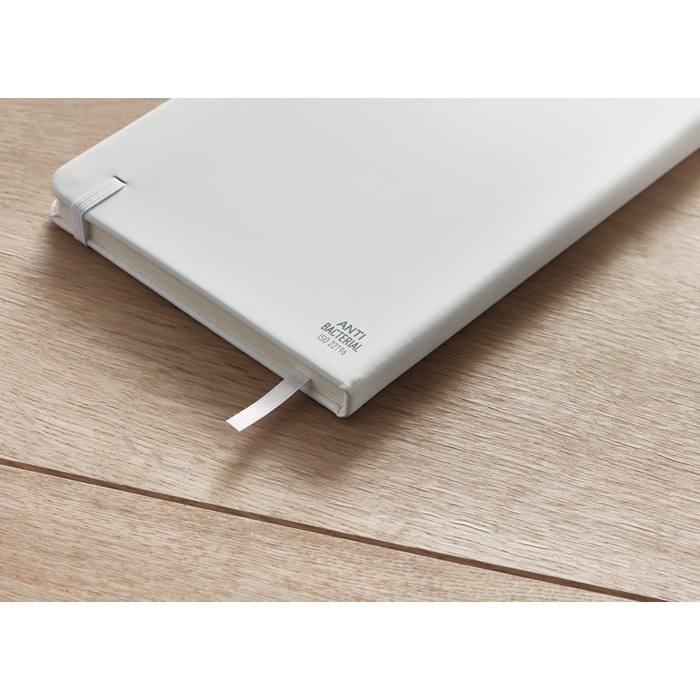 - Libreta A5 con tratamiento antibacteriano y tapa rígida de PU