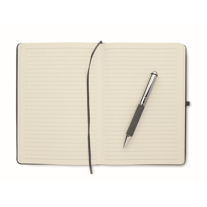 - Set de regalo con libreta A5 de piel reciclada (75%) y bolígrafo metálico