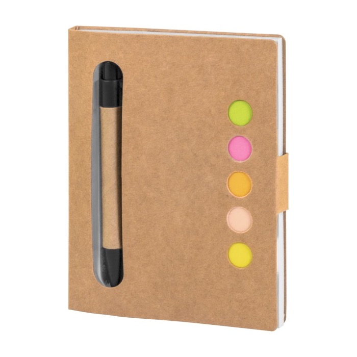 Bloc notas de cartón reciclado con adhesivos y bolígrafo RecycleBoard