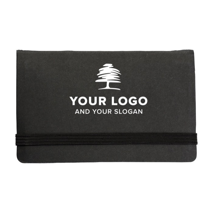 Portanotas de cartón con cierre elástico y bolsillo para tarjetas