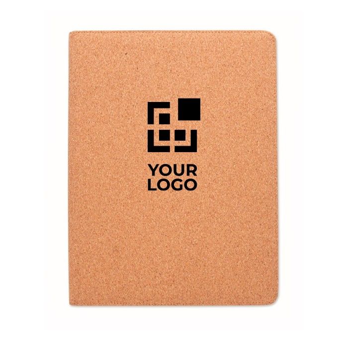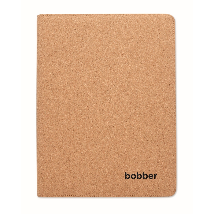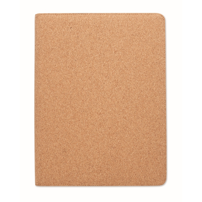 - Portadocumentos A4 de corcho con bloc de notas y bolígrafo a juego