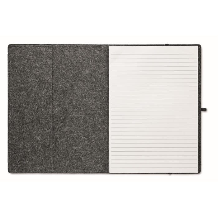 Portadocumentos en fieltro RPET con bloc y portabolígrafo A4
