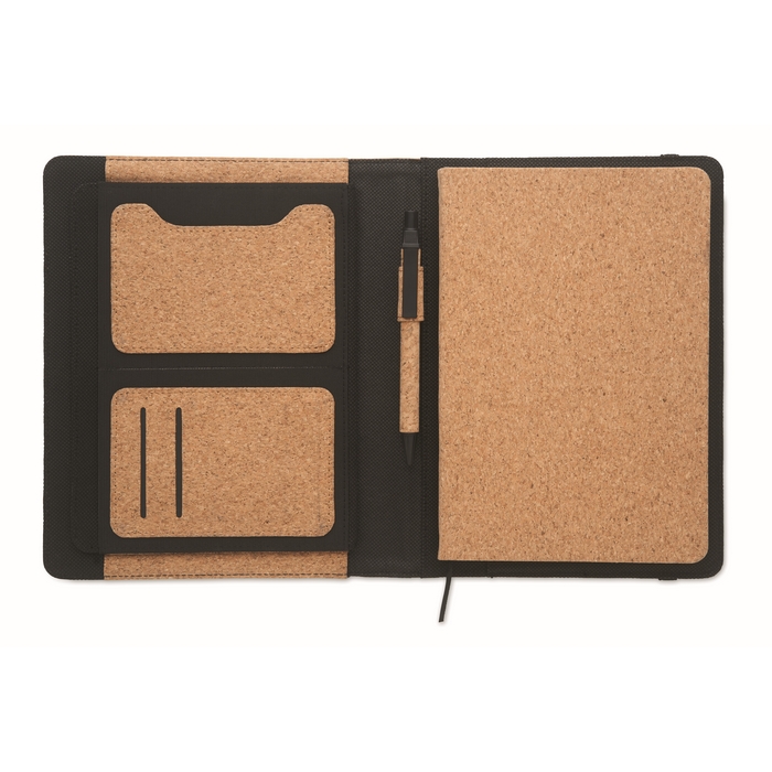 - Portadocumentos A5 de corcho natural con libreta y bolígrafo a juego