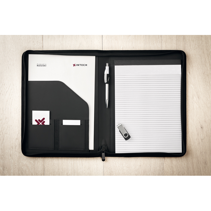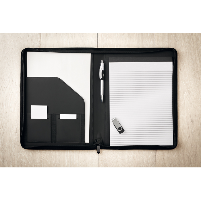 Porta documentos jaspeado A4 de poliéster con cremallera. Diseñado para mantener la organización, cuenta con compartimentos interiores que facilitan el almacenamiento de documentos importantes. Incluye un porta bolígrafo, asegurando que siempre tengas una herramienta de escritura a mano. Además, viene con un bloc de notas de 20 hojas rayadas, ideal para tomar apuntes rápidos o registrar ideas durante reuniones. Su formato A4 es perfecto para documentos estándar, y su diseño compacto lo hace fácil de transportar. Con servicio Express disponible, es una opción eficiente para equipos de ventas que necesitan soluciones rápidas y prácticas. Ideal para presentaciones corporativas o como material promocional en eventos empresariales.