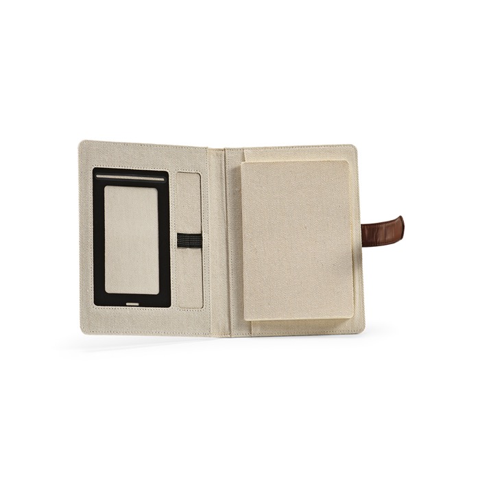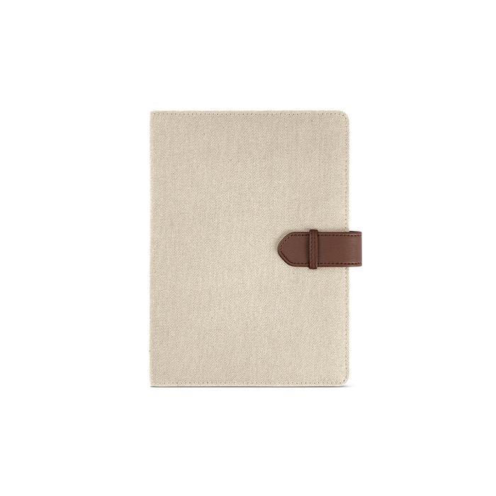 Portafolios de algodón reciclado con cierre a presión y hojas A5