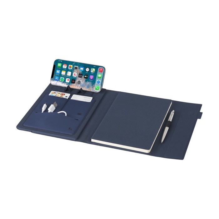 Portafolios de poliéster reciclado con portatajetas y soporte móvil