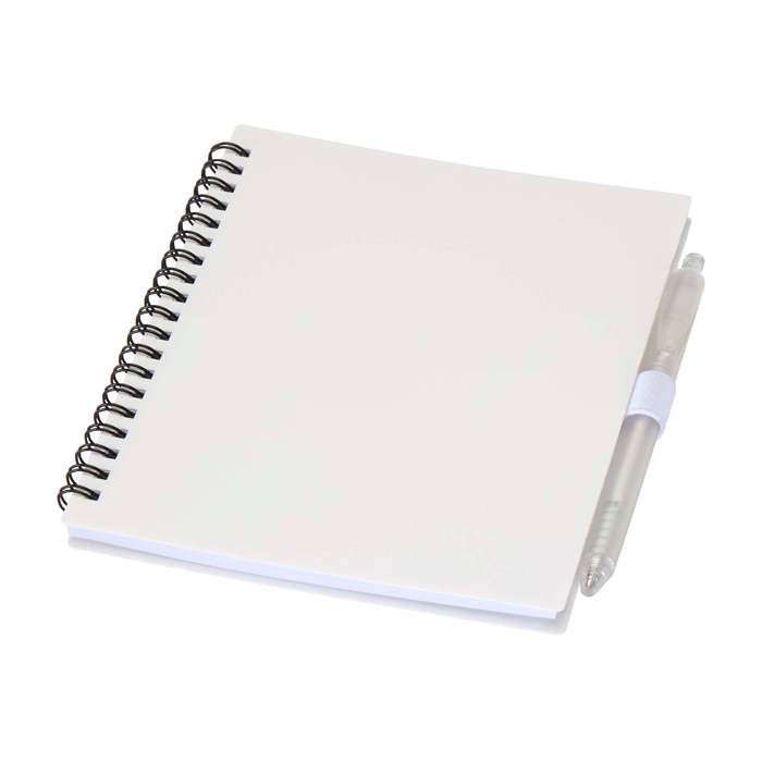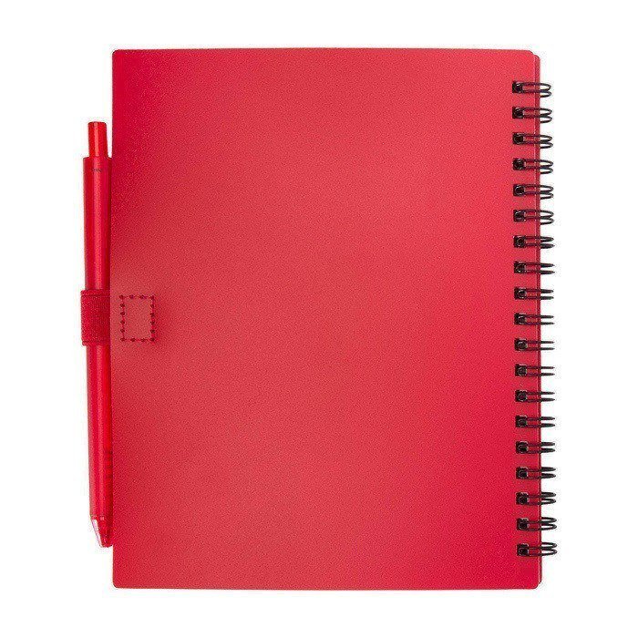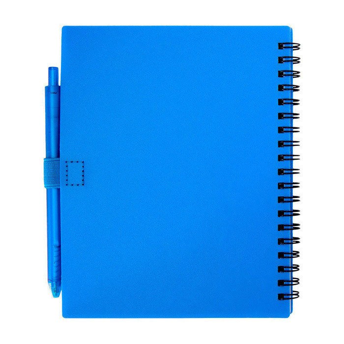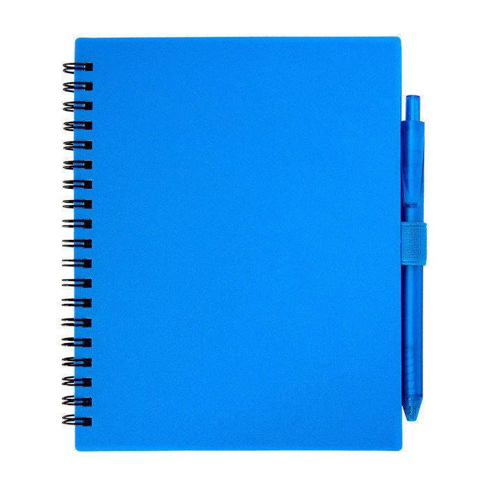 Libreta de plástico reciclado con bolígrafo con soporte tinta azul