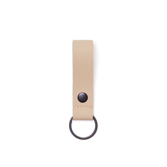 Llavero de tira de cuero con detalle de metal en parte superior