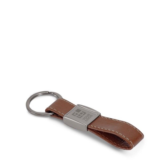 Llavero publicitario de cuero con detalle para personalizar de metal