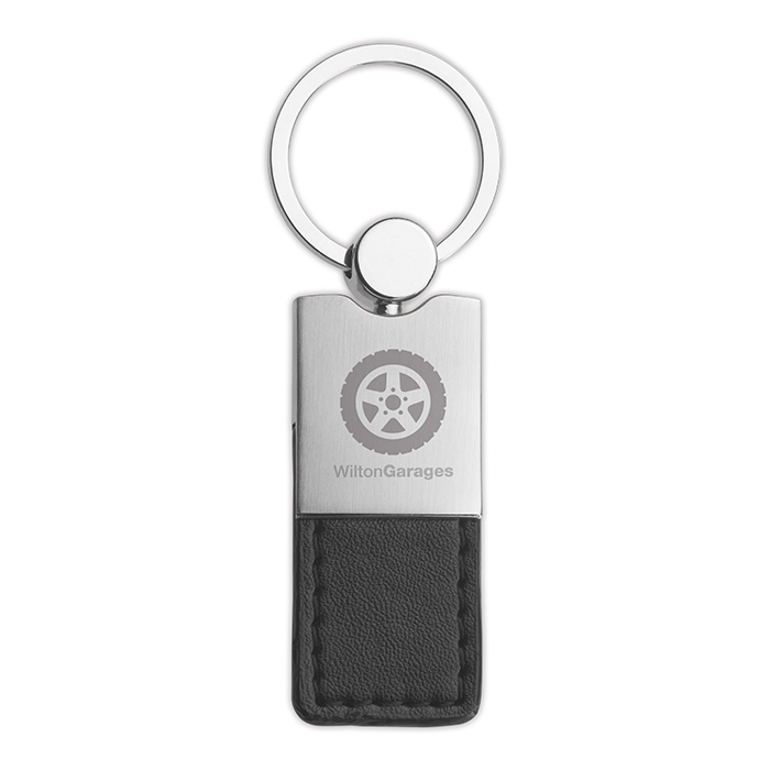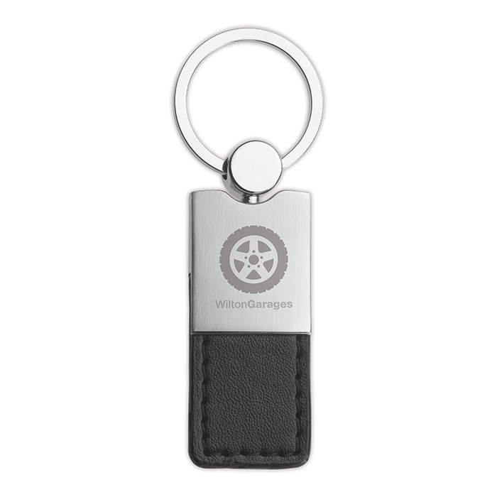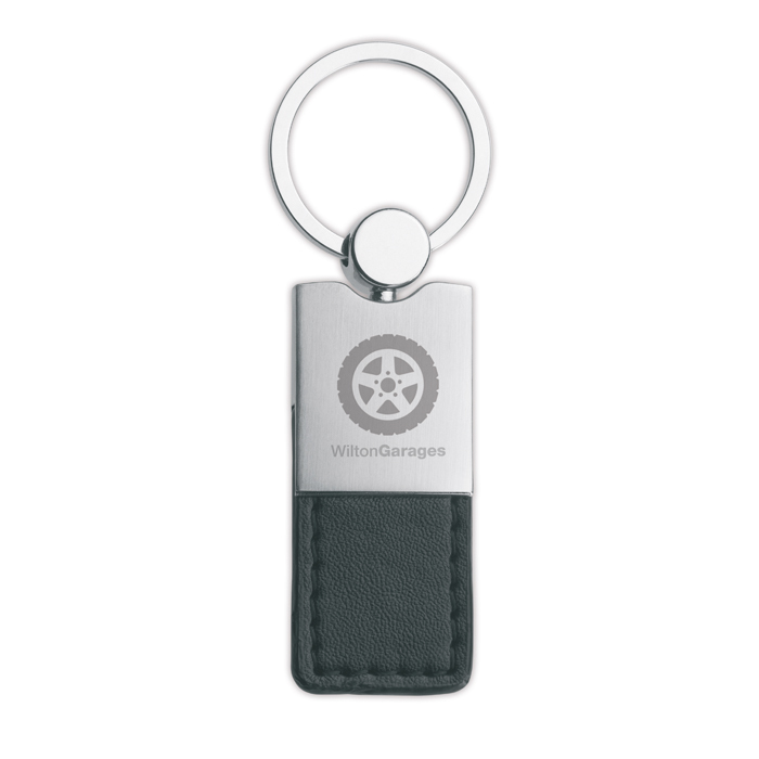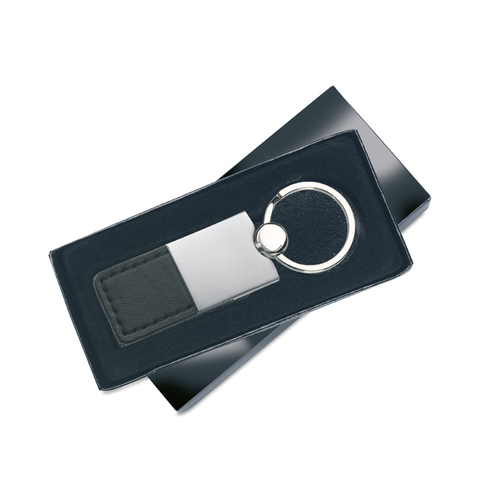 Llavero corporativo rectangular negro de metal y polipiel Charm