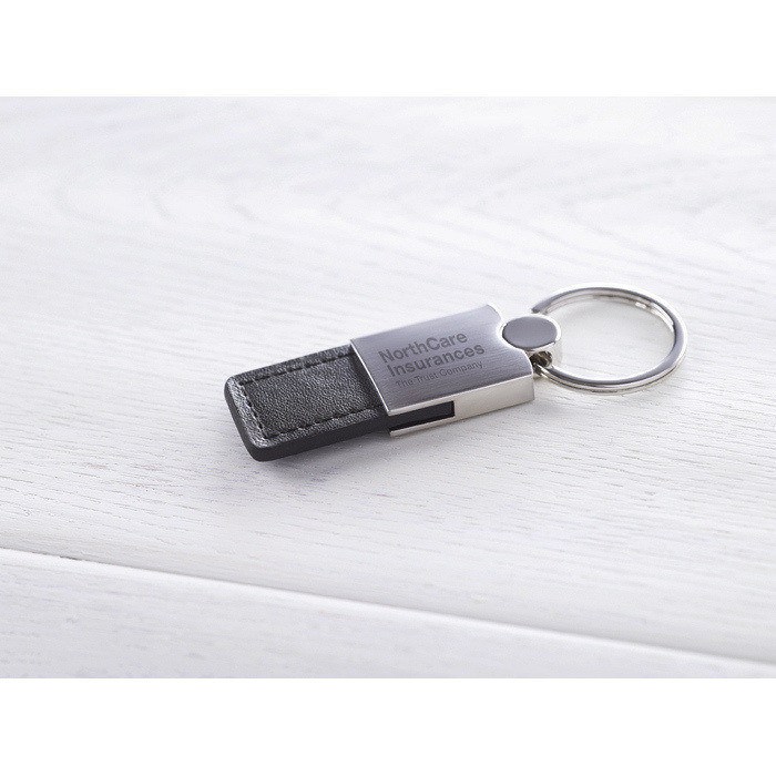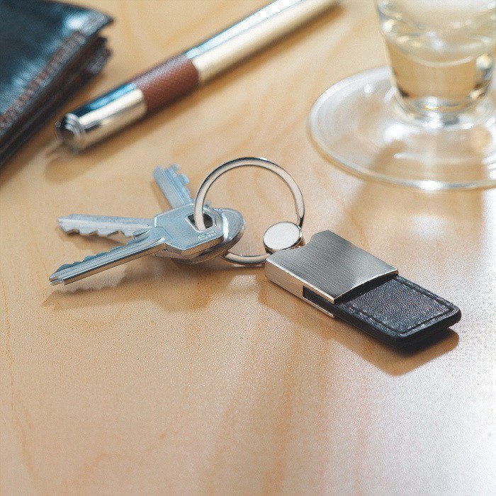 Elegante llavero de cuero personalizado para empresas y publicidad fabricado en metal y piel para regalar en acciones publicitarias, eventos o merchandising.