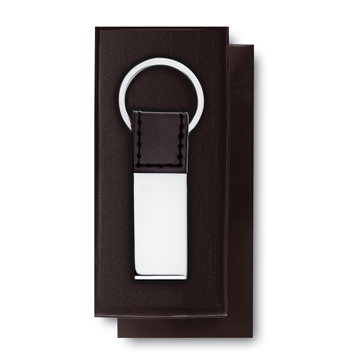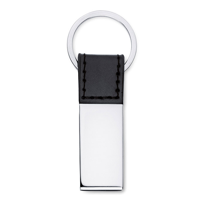 Llavero corporativo rectangular negro de metal y polipiel Charm