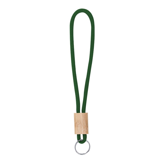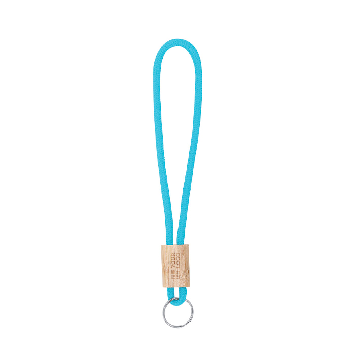 Llavero de cordón de poliéster en colores con ajuste de bambú
