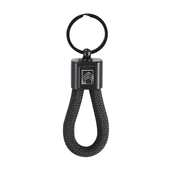 - Llavero con cordón de poliéster y placa metalizada para logo