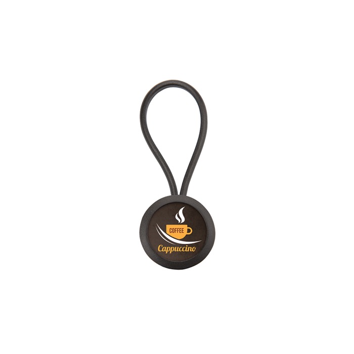 Llavero de forma ovalada con cuerda y papel insertado a una cara
