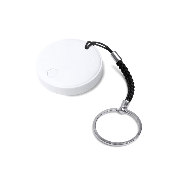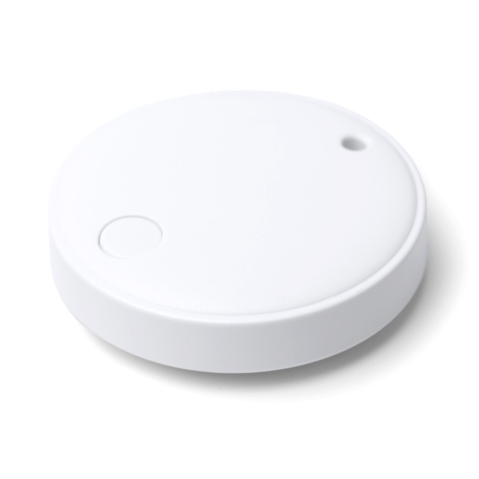 Localizador antipérdida de plástico con protección frente al agua y llavero integrado para llevarlo en llaves, mochilas o maletines. Se vincula con móviles iOS y Android mediante una app y conexión Bluetooth, facilitando encontrar objetos a distancia. Funciona con pila y emite una señal acústica para localizarlo con rapidez cuando no está a la vista. Incluye anilla metálica y cinta de transporte para un uso cómodo en el día a día. Adecuado para acciones de marca en ferias y equipos comerciales.