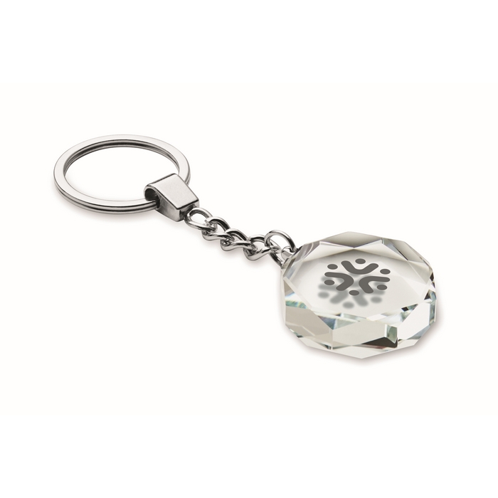Llavero redondo de cristal, diseñado con un acabado geométrico único que evoca la elegancia de una joya. Este llavero no solo es un accesorio funcional, sino también un detalle distintivo que destaca por su sofisticación. Presentado en una caja de regalo, es ideal para premiar logros o reconocer el esfuerzo de colaboradores y socios. Su diseño atractivo y su presentación cuidada lo convierten en una opción excelente para eventos corporativos o como parte de una estrategia de fidelización de clientes.