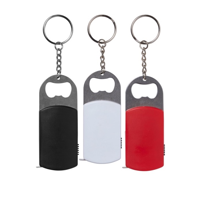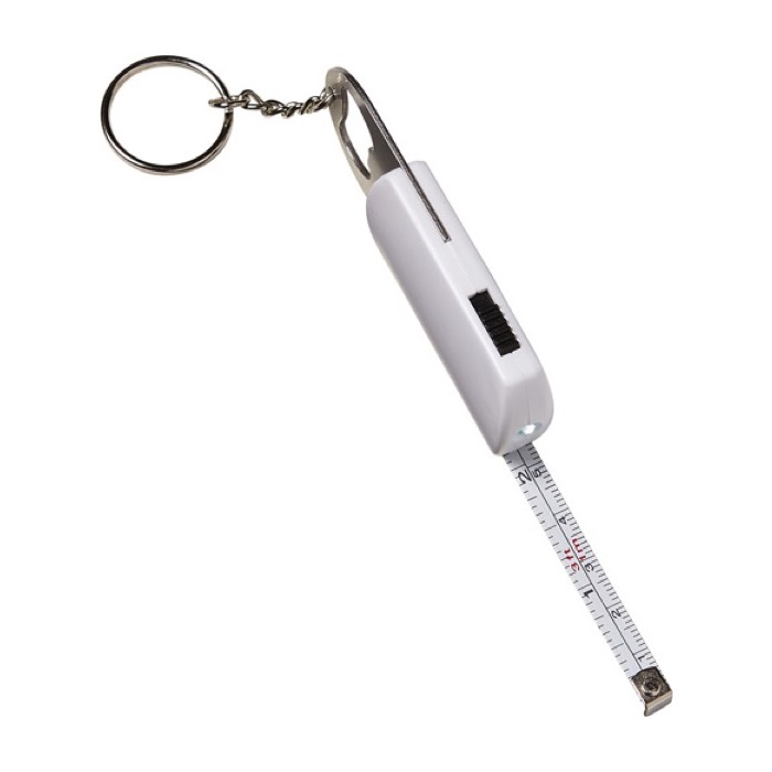 Llavero grabado de metal abrebotellas con LED y cinta métrica de 1M