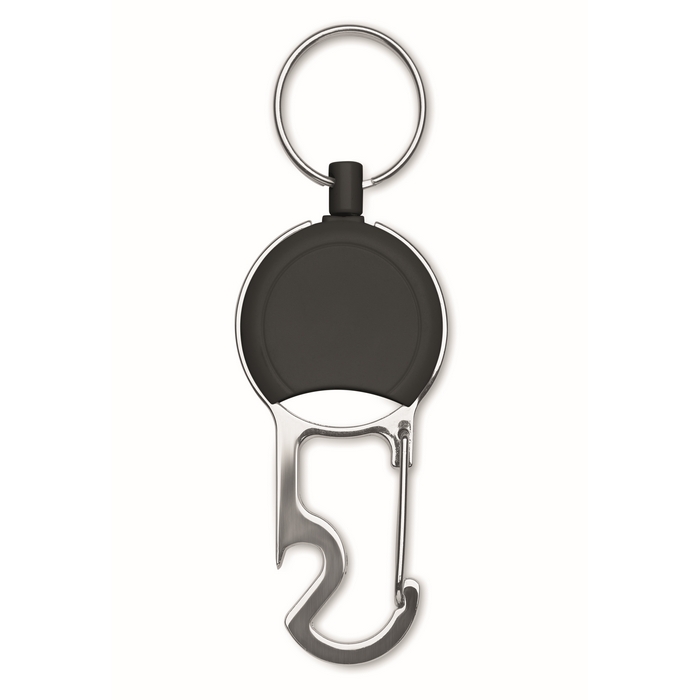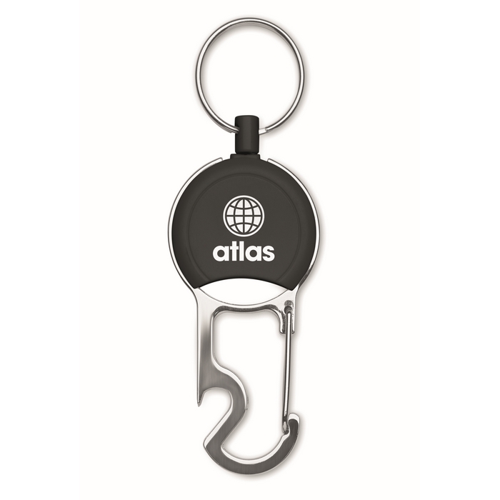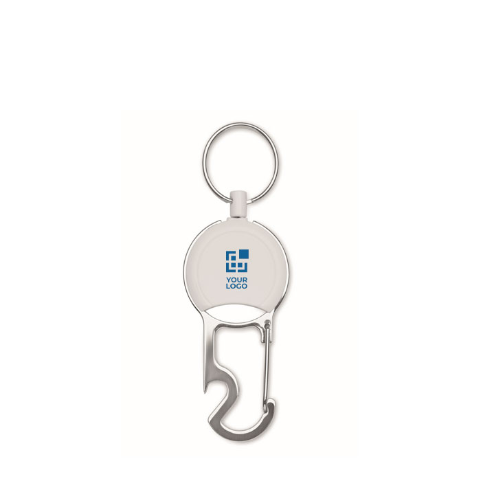 Portacredenciales retráctil con clip y abrebotellas para eventos empresariales