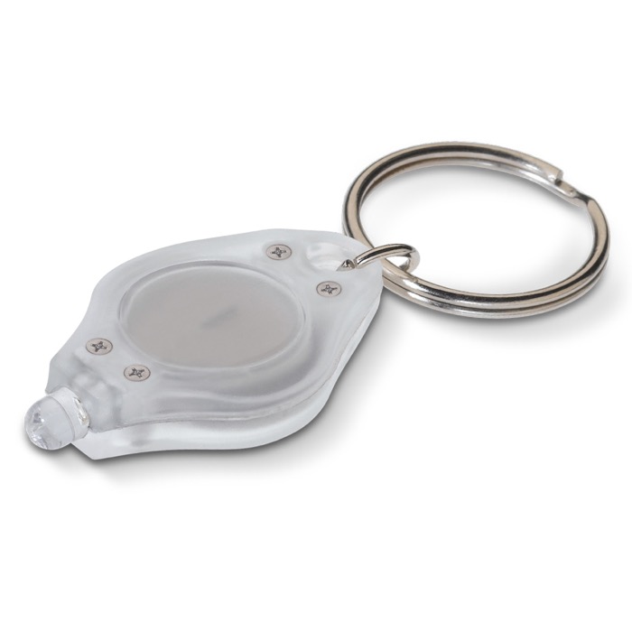Llavero publicitario en varios colores en forma de rombo con linterna