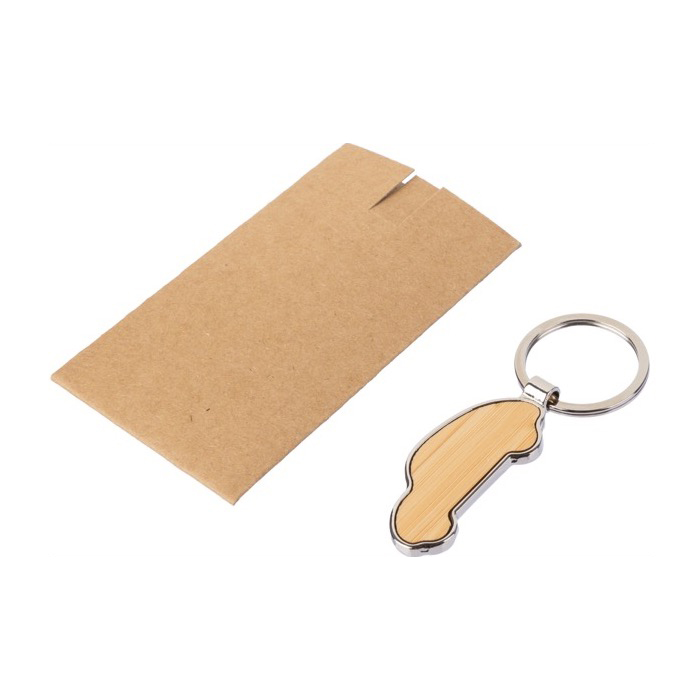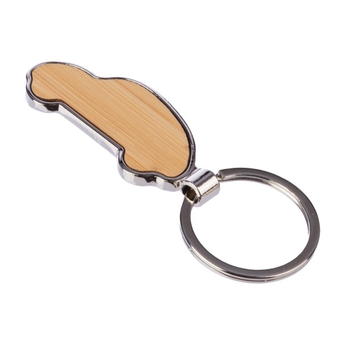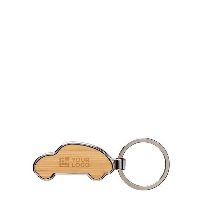 Llavero hecho de bambú y zinc en forma de coche personalizable