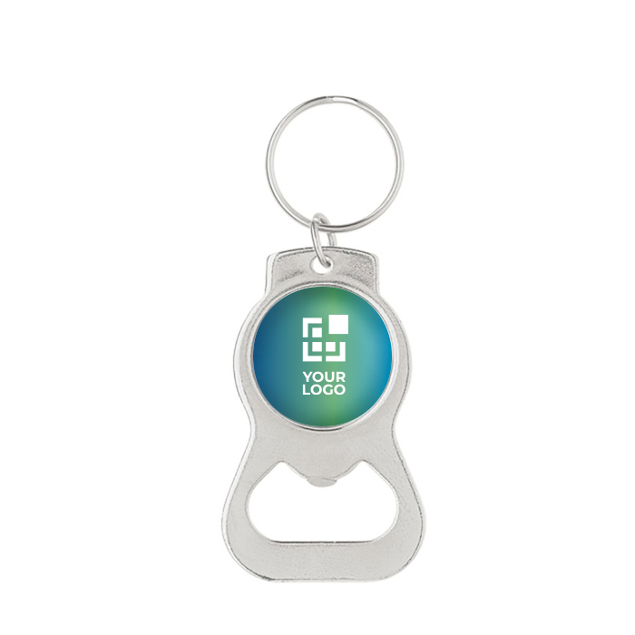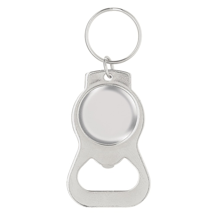 - Llavero abrebotellas de metal con marcaje en gota de resina